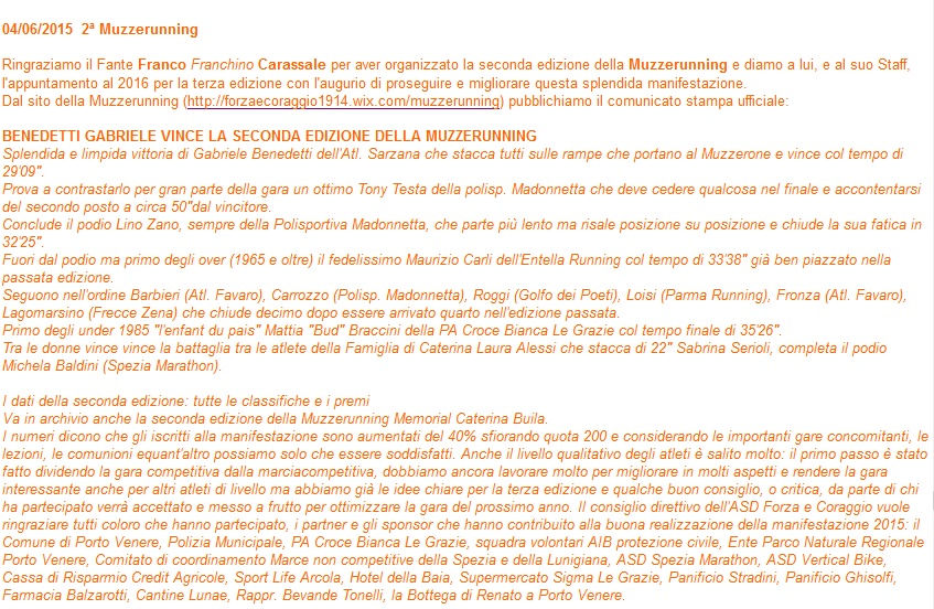 di Massimiliano Ercolini - dal sito di Spezia Marathon